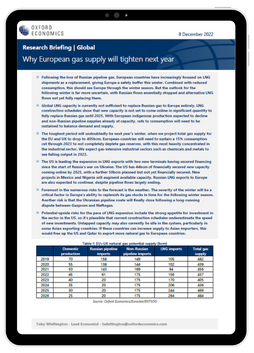 Following the loss of Russian pipeline gas, European countries have increasingly focused on LNG shipments as a replacement, giving Europe a safety buffer this winter. Combined with reduced consumption, this should see Europe through the winter season. But the outlook for the following winter is far more uncertain, with Russian flows essentially stopped and alternative LNG flows not yet fully replacing them.