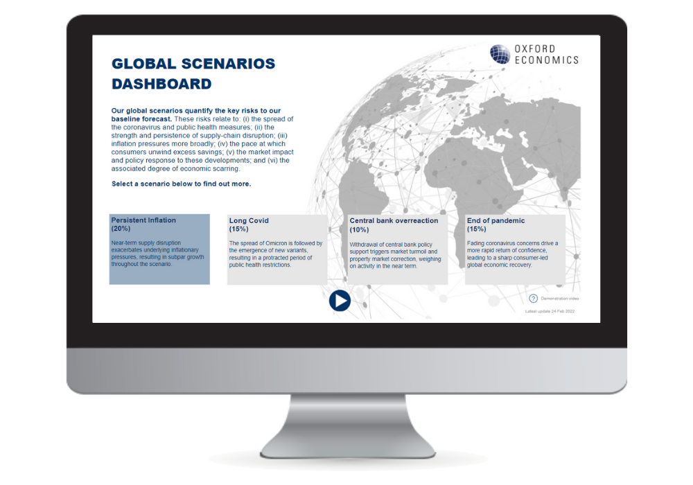 - 5つのシナリオ:先進国を含む世界GDPの大部分を占める80の個別経済、ユーロ圏、世界全体の集計データをカバー