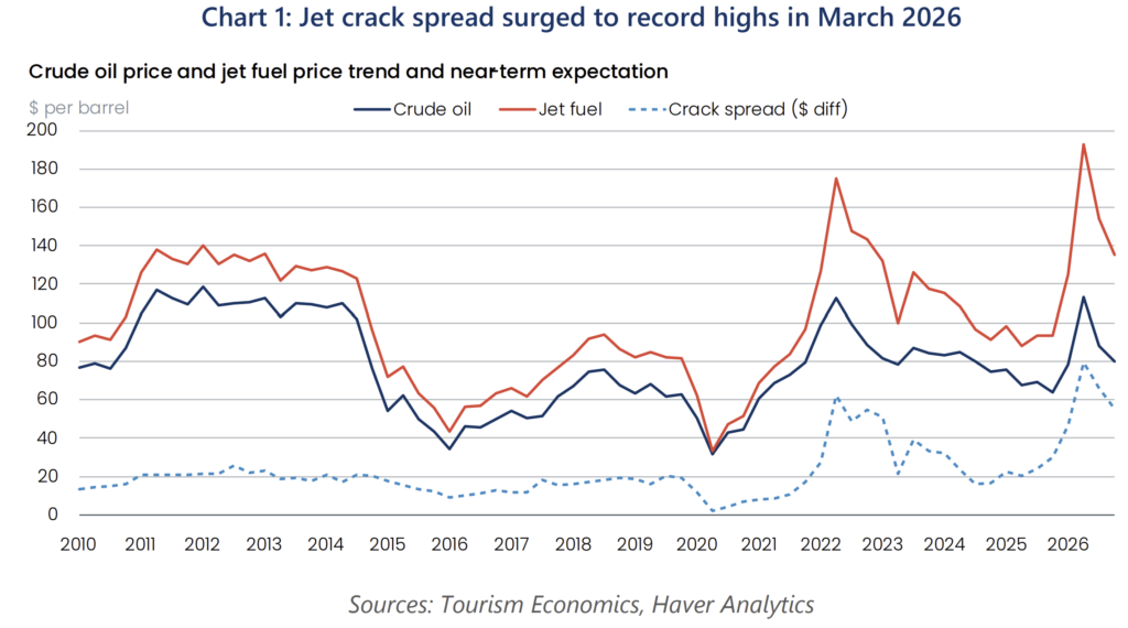 A conflict-driven fuel price surge is raising airfares and slowing global air travel demand.
