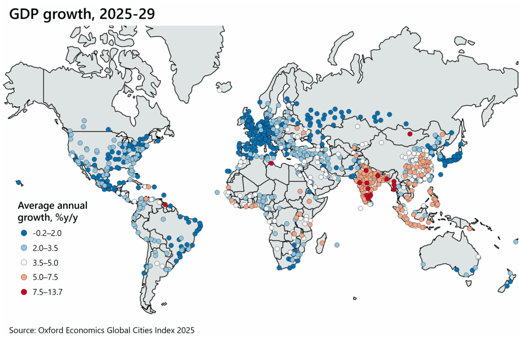 Chart 1: Southern Asian cities dominate medium-term GDP growth rankings