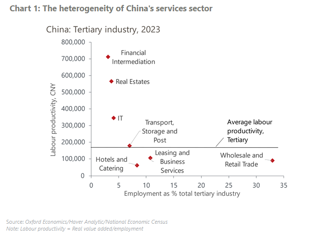 However, high value-added services, such as information technology, finance and logistics, have shown stronger productivity gains. Further integrating these segments into traditional industrial and services sectors will be increasingly vital for China’s productivity and supporting long-run economic transformation.