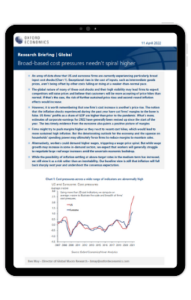 An array of data show that US and eurozone firms are currently experiencing particularly broad input cost shocks. Exceptional rises in the cost of inputs, such as intermediate goods prices, aren’t being offset by other costs falling or rising at a weaker-than-normal pace.