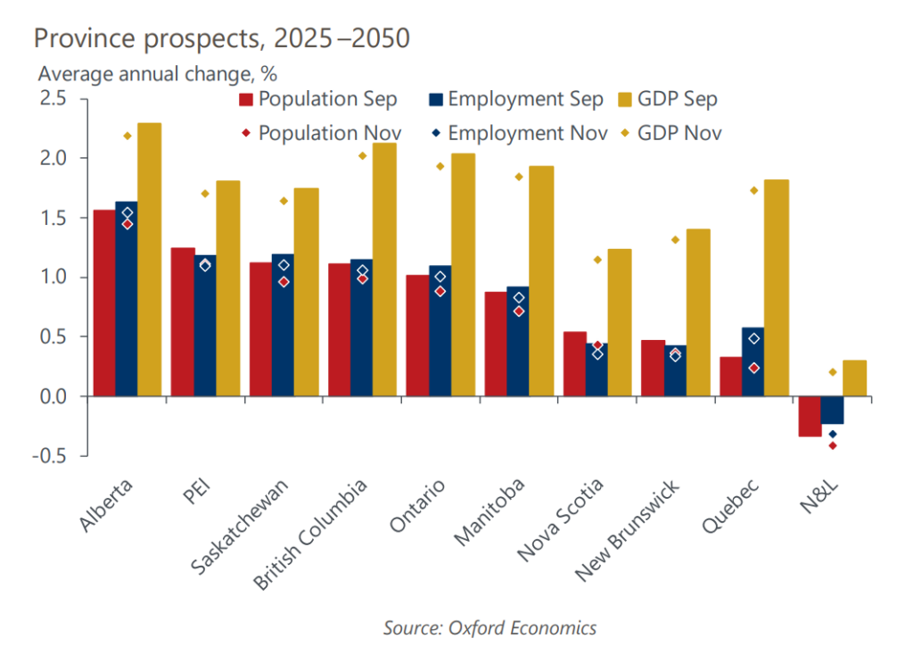 Data and forecasts for Canadian provinces and metropolitan areas.