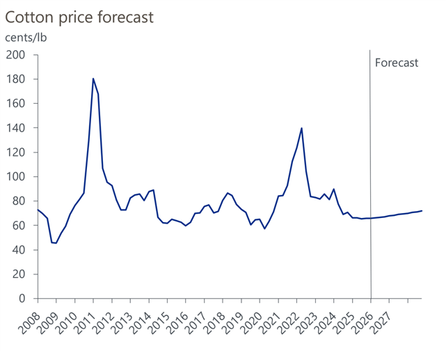 Despite healthy harvests this season, lower planting intentions for 2025/2026 could help stabilise prices. We forecast ICE cotton prices to average 66 cents/lb in 2025 and 66.5 cents/lb in 2026.