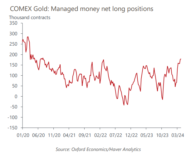 - But with the US economy proving resilient and real rates making new highs, the rally will likely run out of steam and we see prices consolidating in the short term.