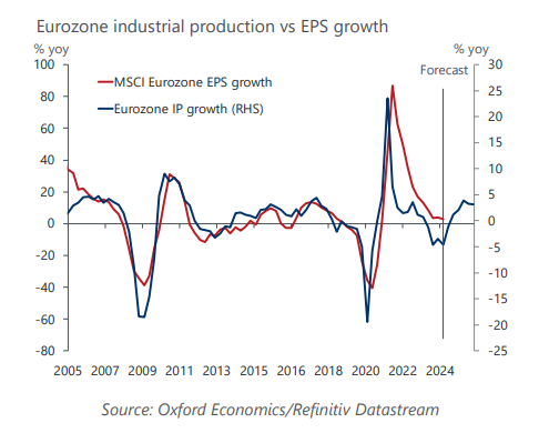 We see signs of an industrial recovery in the eurozone which bodes well for eurozone EPS growth and supports our recent upgrade of the region to overweight. Energy intensive sectors look well placed to outperform as they trade on very depressed valuations and should benefit from the industrial upturn.