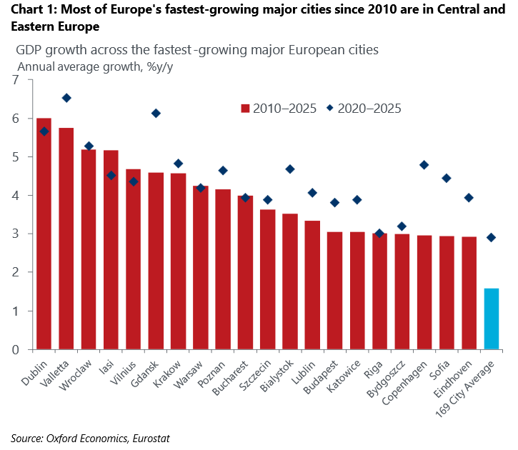 European cities have faced a turbulent decade and a half as the continent has been hit with a series of shocks. From the Eurozone crisis to the war in Ukraine, with Covid-19 in between, the continent has suffered a sustained period of difficult economic conditions. But, despite these challenges, a number of cities have experienced fast rates of growth.