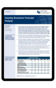 Finland’s GDP in the last few quarters has been revised up slightly, lifting our growth forecast for 2021. High-frequency indicators show that the economy remains resilient amid mounting downside risks related to supply-chain bottlenecks and surging energy prices.