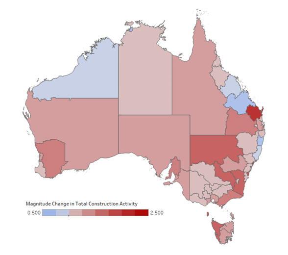 Fig. 1. Magnitude Increase in Total Construction Activity by SA4,2024-2033 against 2014-2023
