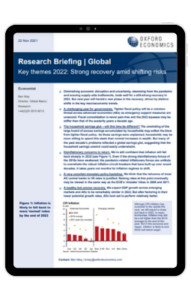 Diminishing economic disruption and uncertainty, stemming from the pandemic and ensuing supply-side bottlenecks, bode well for a still-strong recovery in 2022. But next year will herald a new phase in the recovery, driven by distinct shifts in the key macroeconomic trends.