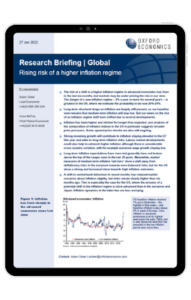 The risk of a shift to a higher inflation regime in advanced economies has risen in the last six months, but markets may be under-pricing the risk in our view. The danger of a new inflation regime – 4% a year or more for several years – is greatest in the US, where we estimate the probability to be now 20%-25%.