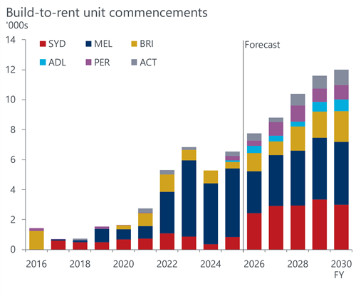 After a slowing in activity last year as developers and investors waited for the implementation of key policies, the Australian build-to-rent (BTR) sector saw a return to growth over FY2025 with unit starts pushing back above 6,500 (+24%).