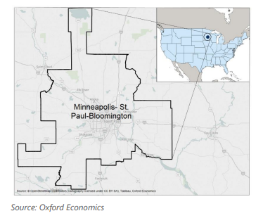 - Minneapolis saw in-migration of 11,400 in 2023. We forecast in-migration of 13,200 in 2024 and 12,500 in 2025. Following population growth of 0.5% in 2023, we forecast population will grow 0.7%, annually, in 2024 to 2028.