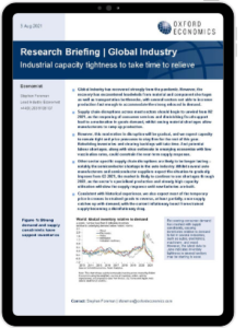 - However, this moderation in disruption will be gradual, and we expect capacity to remain tight and price pressures to stay firm for the rest of this year. Other sector-specific supply chain disruptions are likely to be longer lasting – notably the semiconductor shortage in the auto industry.