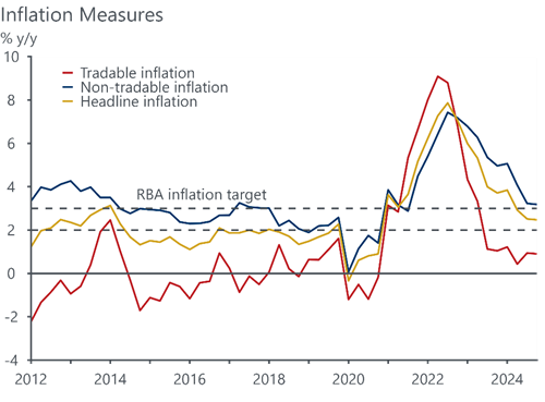 Chart 1: Headline inflation steadily declines from 2022 peak, with tradable component easing lower