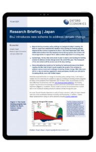 - Since strengthening incentives for funding-for-lending schemes at the March meeting, the BoJ had hinted it would expand the scope of the schemes to address various structural challenges including climate change.