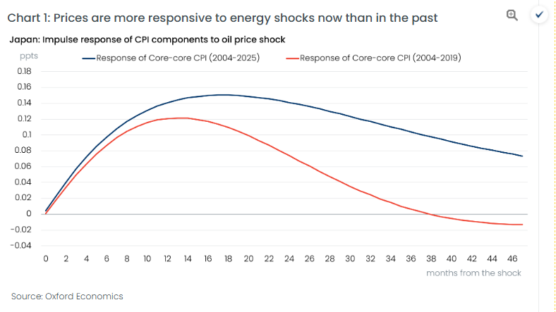 We have raised our CPI forecast for Japan for this year and next, reflecting a revised profile for oil prices. We now expect core-core CPI (excluding fresh foods and energy) will stay elevated for an extended period, falling to 2% only in Q4 2027, instead of Q2 2026 as expected two months ago.
