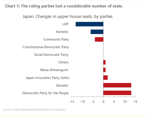 The ruling Liberal Democratic party (LDP) and its partner Komeito lost their majority in Japan’s upper house elections on July 20. Although Prime Minister Shigeru Ishiba will likely stay to avoid political gridlock, especially to complete tariff negotiations with the US, the political situation has become fluid and could lead to a leadership change or the reshuffling of the coalition.