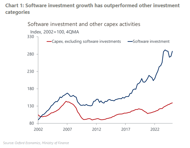 Software investment in Japan has risen sharply since the late 2010s, outpacing investment overall. We expect this high rate of growth to continue as the economy undergoes a digital transformation and the acute shortage of labour continues, driven by adverse demographics.