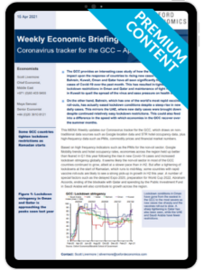 despite continued relatively easy lockdown restrictions. This could also feed into a difference in the speed with which economies in the GCC recover over the summer months. - This MENA Weekly updates our Coronavirus tracker for the GCC, which draws on non-traditional data sources such as Google location data and STR hotel occupancy data, plus high-frequency data such as PMIs, commodity prices and financial market numbers.