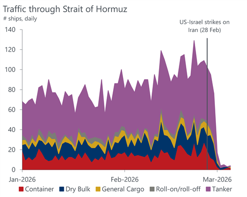 The conflict in the Middle East delivered an immediate shock to global trade, but the impacts aren’t uniform across regions and commodities. Tanker rates are surging on top of already-rocketing oil prices; insurers have been quick to reprice war-risk premiums, while the closure of the Strait of Hormuz has stranded vessels, effectively removing them from the global fleet.