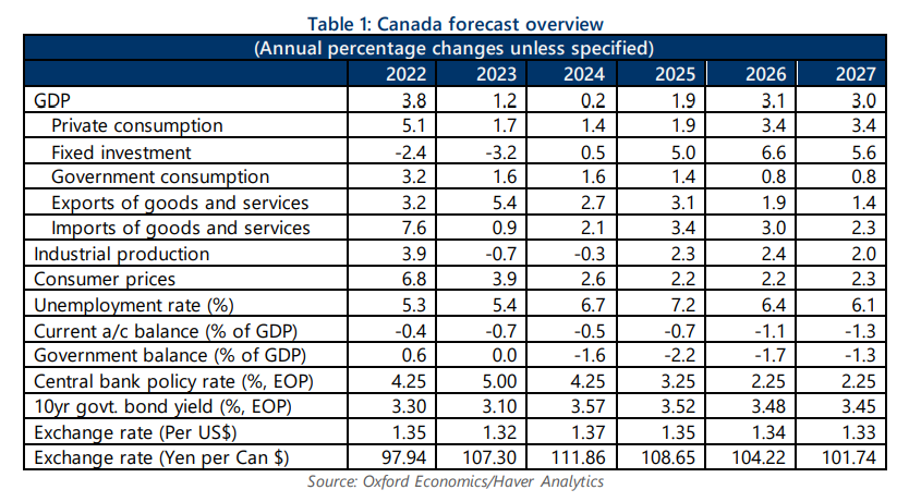 Mild mid-year downturn before a tepid recovery emerges for Canada