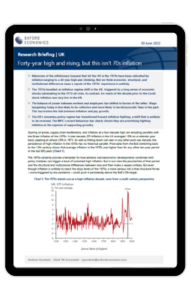 Memories of the inflationary tsunami that hit the UK in the 1970s have been rekindled by inflation surging to a 40-year high and climbing. But we think economic, structural, and institutional differences mean a repeat of the 1970s’ experience is unlikely. The 1970s heralded an inflation regime shift in the UK, triggered by a long series of economic shocks culminating in the 1973 oil crisis.