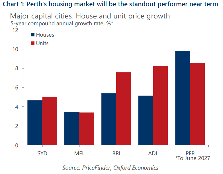 - Interest rate cuts from the end of 2024, compounded by a sustained housing shortage are set to trigger an acceleration in price growth. The median house price is forecast to grow an average 6.2% p.a. over the three years to FY2027. Off a softer run up in recent years, units are expected to outperform, lifting 6.7% annually.