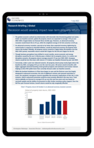 The global economic outlook has deteriorated, with downside risks threatening global real estate. Under our baseline scenario, global all-property returns are expected to average 7.4% pa over 2022-2023, 0.2ppts below our forecast three months ago. However, an advanced economy recession would knock this to 5% pa, while the weighted average of all risk scenarios is 6.6% pa.