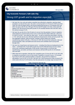Salt Lake City: Strong GDP growth and in-migration expected