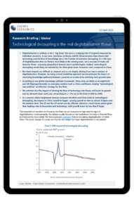 Deglobalisation is unlikely to be a “big bang” but more a creeping tide of targeted measures by individual countries, in our view. Sanctions on Russia and US-China tensions have shown that technology and the flow of knowledge are at the frontier of economic decoupling.