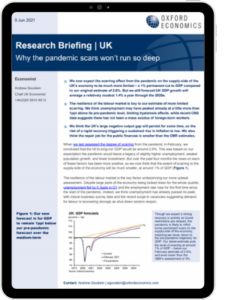 We now expect the scarring effect from the pandemic on the supply-side of the UK’s economy to be much more limited – a 1% permanent cut to GDP compared to our original estimate of 2.6%. But we still forecast UK GDP growth will average a relatively modest 1.4% a year through the 2020s.