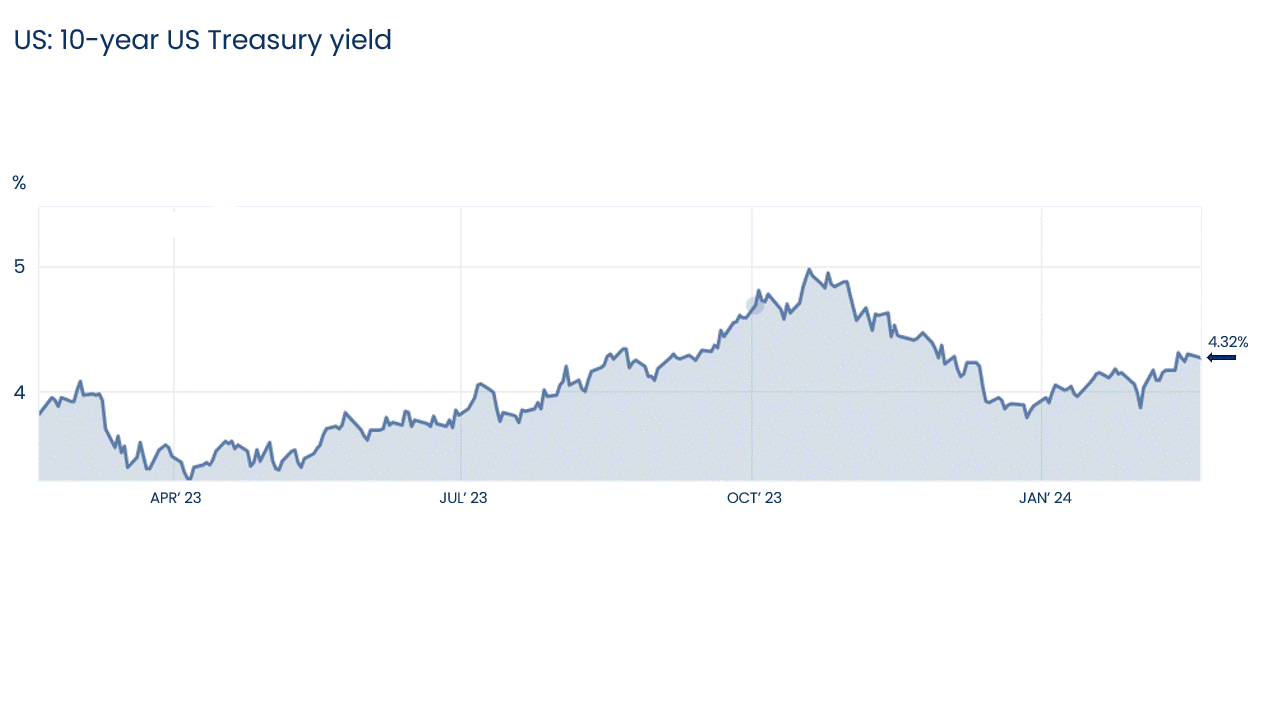 In mid-2023, markets began pricing in a series of US interest rate cuts, which some investors expected to begin as early as March 2024. These views depended largely on a faster deceleration of inflation than we forecast. With the pace of disinflation proving more gradual, fixed income markets have moved to reprice the rate outlook – causing some trepidation among investors.