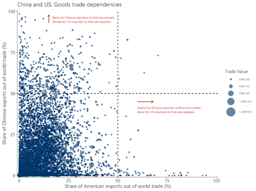 However, China’s dominance in the export of many of the goods that the US imports will create more headaches for US importers. And even if the US can find other suppliers, in most cases, it only accounts for a small share of global demand so China is likely to find other destinations where it can ship its goods.