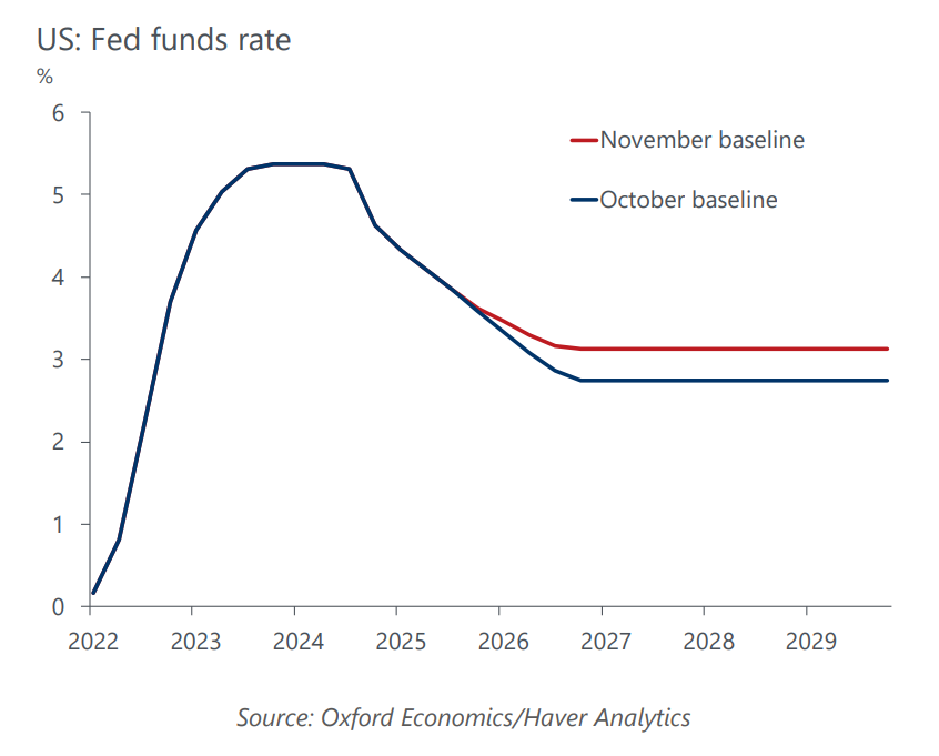- We modeled a scenario where the Fed succumbs to political pressure to lower rates, which provides a near-term boost to the economy. Over the longer term, however, higher inflation expectations would weigh on economic growth and push inflation higher.
