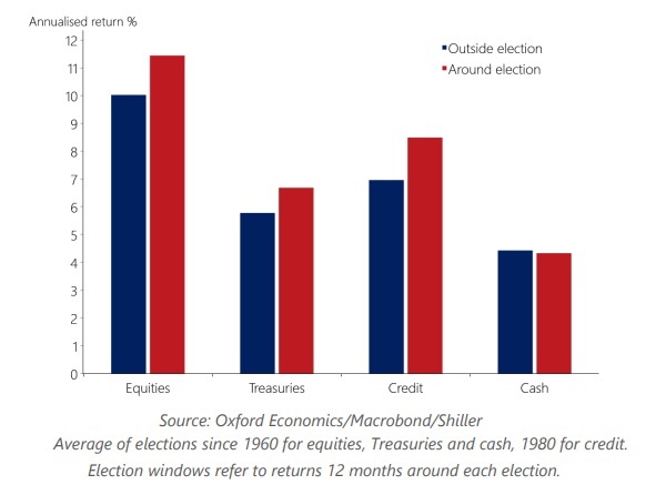 History suggests that presidential elections are not a significant driver of asset returns. That is, asset returns around elections are, on average, the same as returns outside of election windows. We expect this year to be no different.