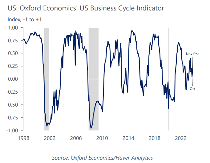 The economy is weakening, but the incoming data are consistent with a slowdown rather than a technical recession. Growing expectations of rapid rate cuts next year, to which the Fed had little pushback, have loosened financial conditions, which, if sustained, reduces the downside risks to the economy in the first half of the year. The peak drag from past tightening in credit conditions is in the rear-view mirror.