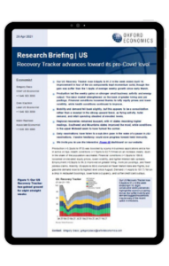 The US Recovery Tracker rose 0.8ppts to 91.2 in the week ended April 16. Improvement in four of the six components kept momentum solid, though the gain was softer than the 1.4ppts of average weekly growth since early March.
