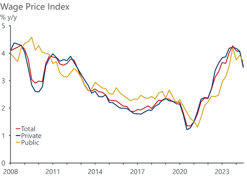 - The wage price index increased by 0.8% q/q in Q3. Quarterly WPI growth has been steady at the same pace through 2024.
