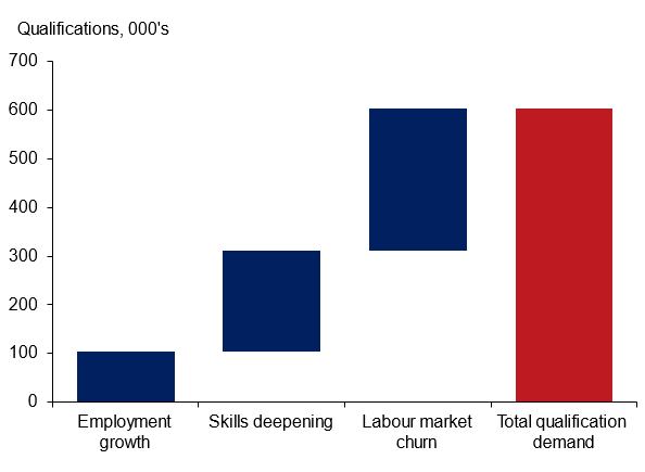 Fig. 3: Change in average annual gross labour market demand for additional qualifications by driver of demand, 2022 to 2052
