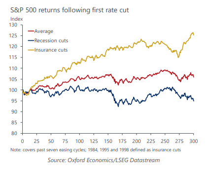 The onset of the Federal Reserve’s easing cycle is typically positive for equities so long as the US economy avoids a recession. We expect this to be the case in the current cycle, although upside for equities is likely to be tempered by high aggregate valuations and slowing EPS growth.