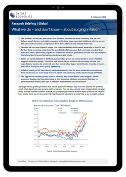 - While we expect inflation to fall back, pressure has grown on central banks to ensure that this happens relatively quickly. Persistent well-above-target inflation has increased the risk that expectations become de-anchored, and that concern has tipped central banks towards erring on the side of doing too much policy tightening.