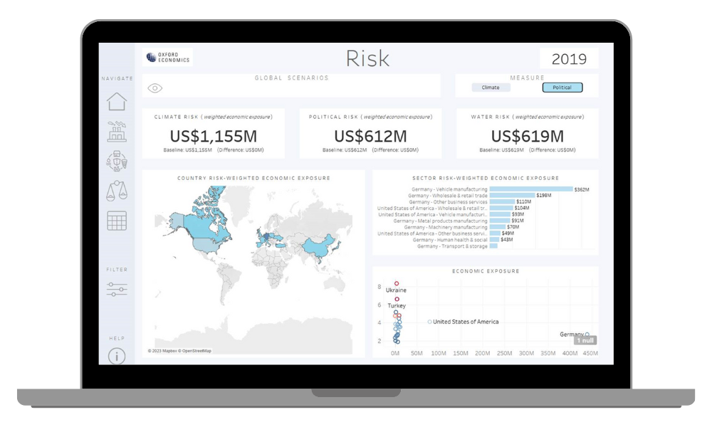 Sustainability spans a vast array of issues, and sustainability-related risk is central to business resilience. Our sustainability risk tool helps you explore exposure to various risks across every country and sector worldwide.