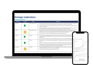 Oxford Economica Australia’s Sydney, Melbourne and Brisbane Industrial Property reports provide 10-year forecasts of metropolitan demand, supply and indicative vacancy rates and identify growth prospects (rents, leasing incentives, yields, capital values and IRRs) across each city’s key industrial precincts to guide investment, leasing and development decisions