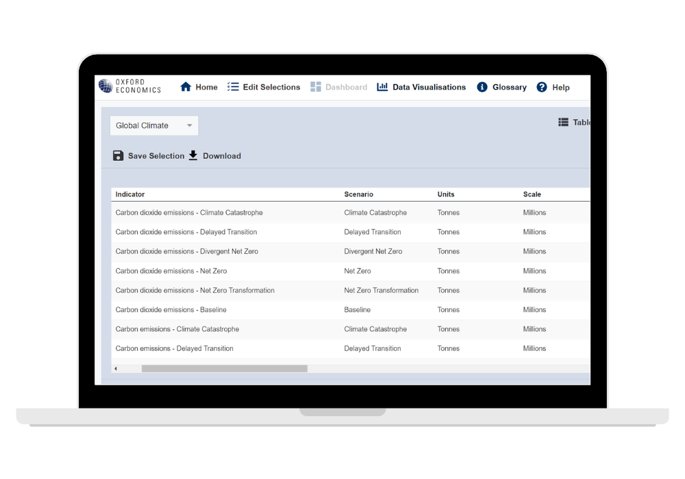 Access to detailed macroeconomic and climate change metrics, with data out to 2050.
