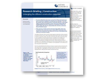 Oxford Economics provides “work done value” forecasts for the construction industry, which measures the total money paid for construction work. Our proprietary construction performance metric enables businesses to best capture real world developments.