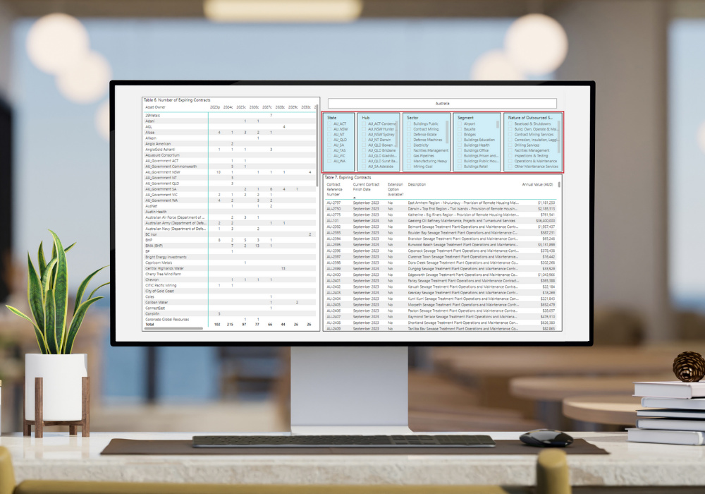 Opportunity analysis for Australian maintenance opportunities, learn more about the specific features of the service or fill in your information and one of our experts will get in contact shortly.