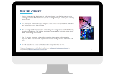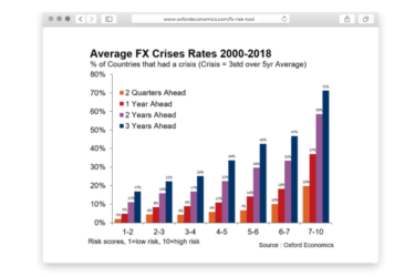 Whether you are involved in foreign investment, cross-border trade or supply chain management, Oxford Economics Risk Tools help you assess the risks you are exposed to. Covering up to 166 markets, our tool provides you with data and insights to identify and quantify the sovereign, FX and banking sector risks, helping you and your business to convert risks into opportunities.