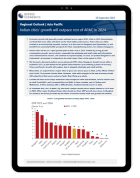2024年,亚太地区各大城市的经济增长将普遍保持低迷。 尽管如此,我们认为一些城市的表现会更加突出。 这些城市要么位于经济活跃的国家,如班加罗尔和海得拉巴,要么将受益于其制造业稍好的前景,如新加坡。