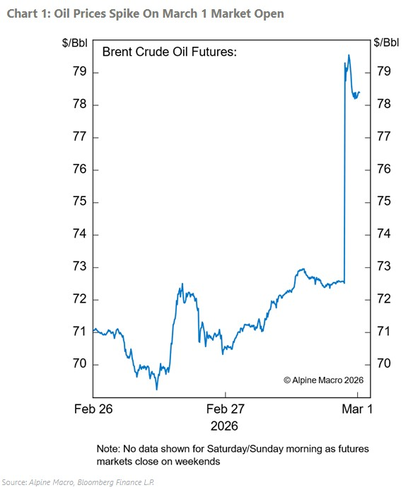 美国与以色列于2月28日对伊朗发起联合空袭。随着新一周交易开启,战争恐慌正迅速计入资产价格:从2月27日至3月1日开盘,油价已显著飙升。